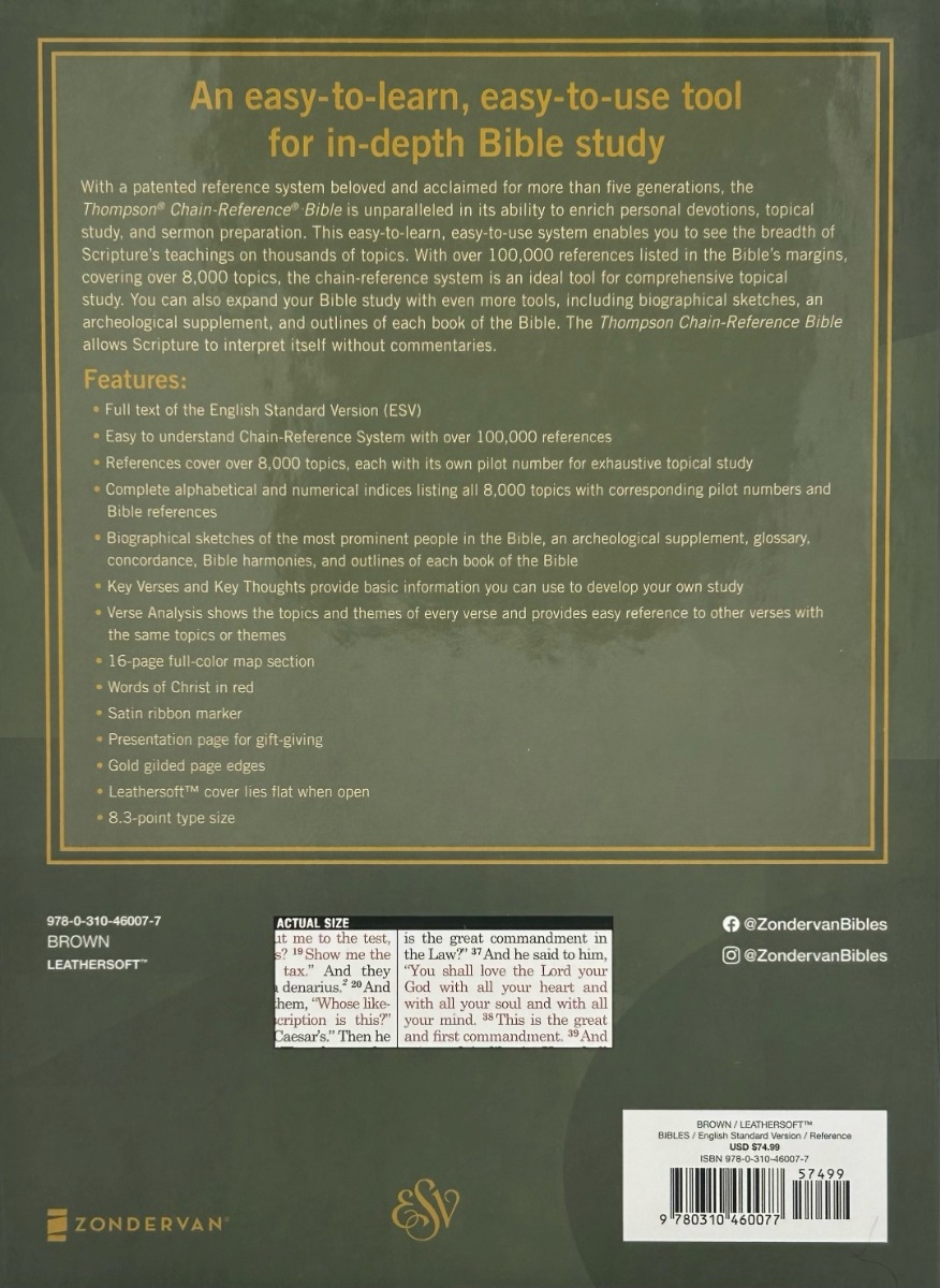 ESV, Thompson Chain Reference Bible, Brown Leathersoft
