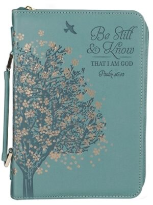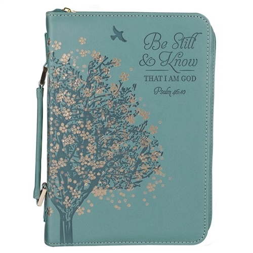 BIBLE COVER, BE STILL AND KNOW, FAUX LEATHER, TEAL, MEDIUM