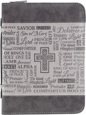 Bible Cover, Black and Gray, Names of Jesus, Large