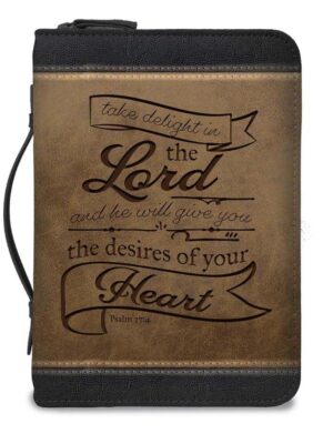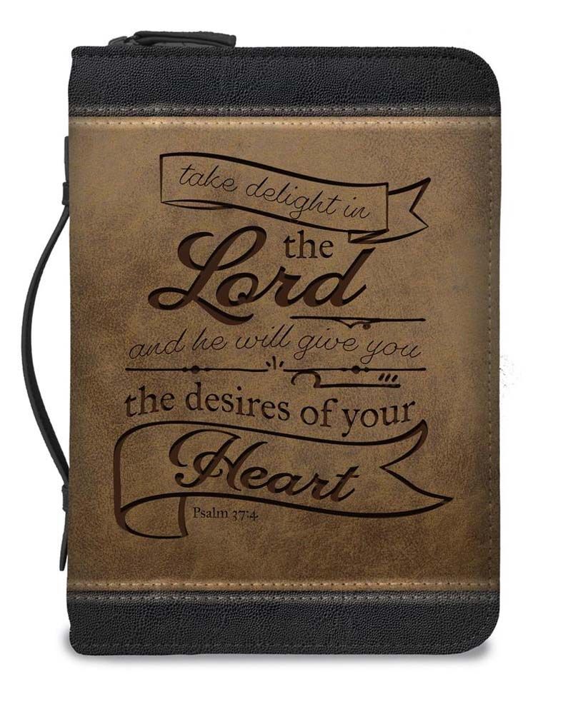 Bible Cover, Delight in the Lord, Medium, Brown