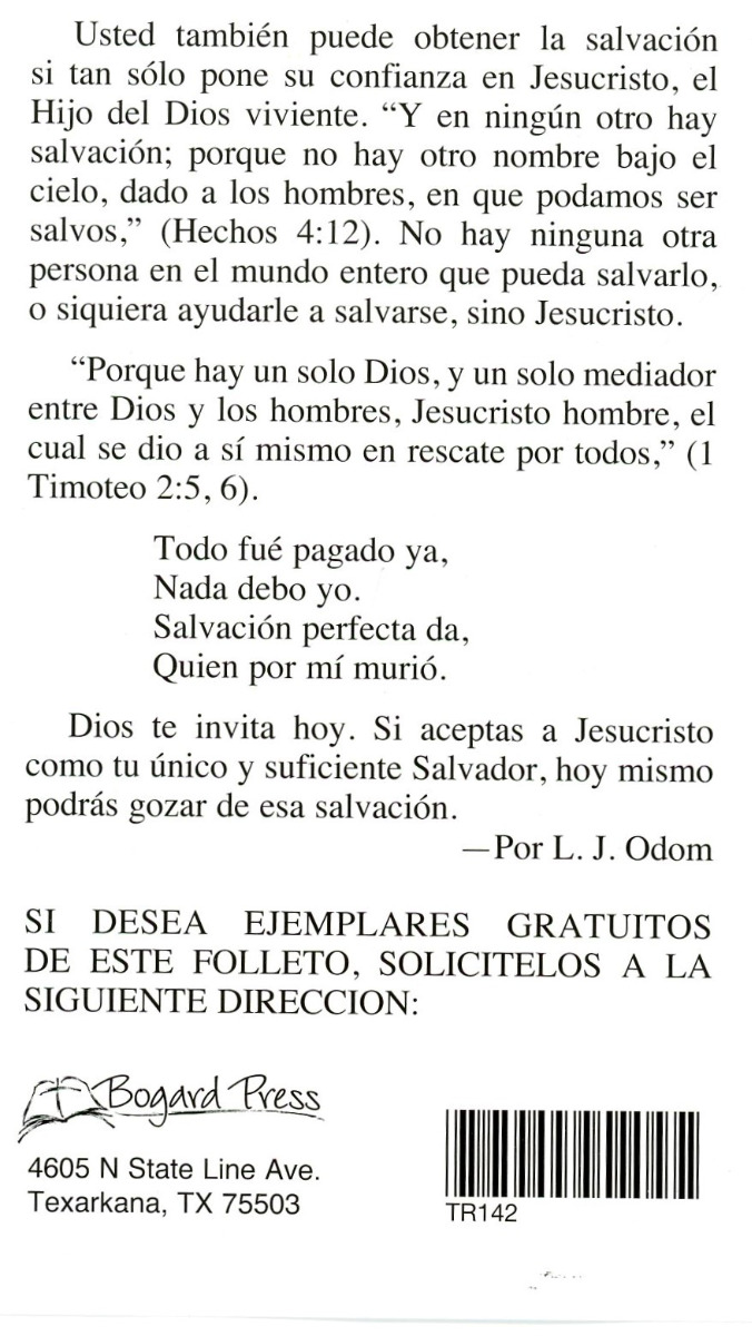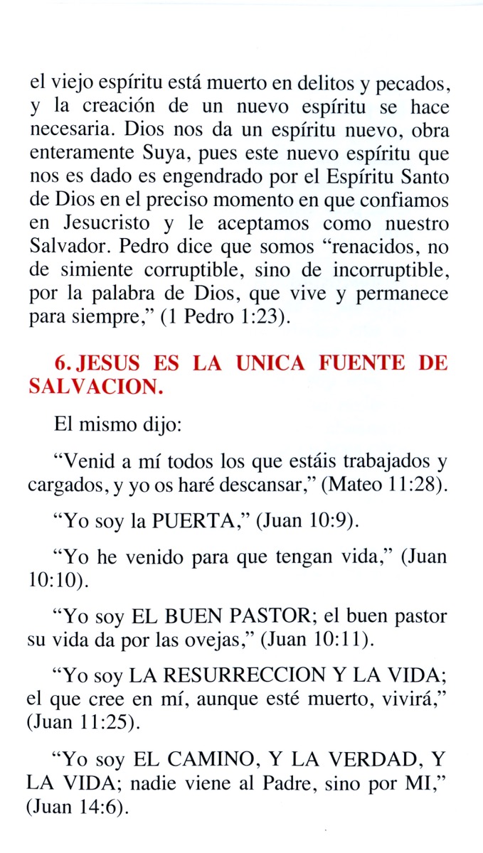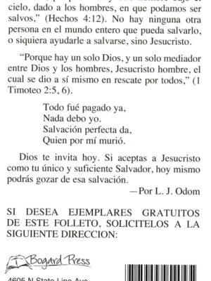 This trifold, Spanish tract presents six statements about the gospel of Jesus Christ to the reader. Jesus is the only way to salvation for all people.