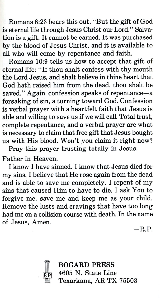 Homosexuality is presented in today’s culture as natural. The Bible clearly states otherwise. This quad-fold tract identifies some of the Scriptures related to homosexuality and shows the way out—through Christ.