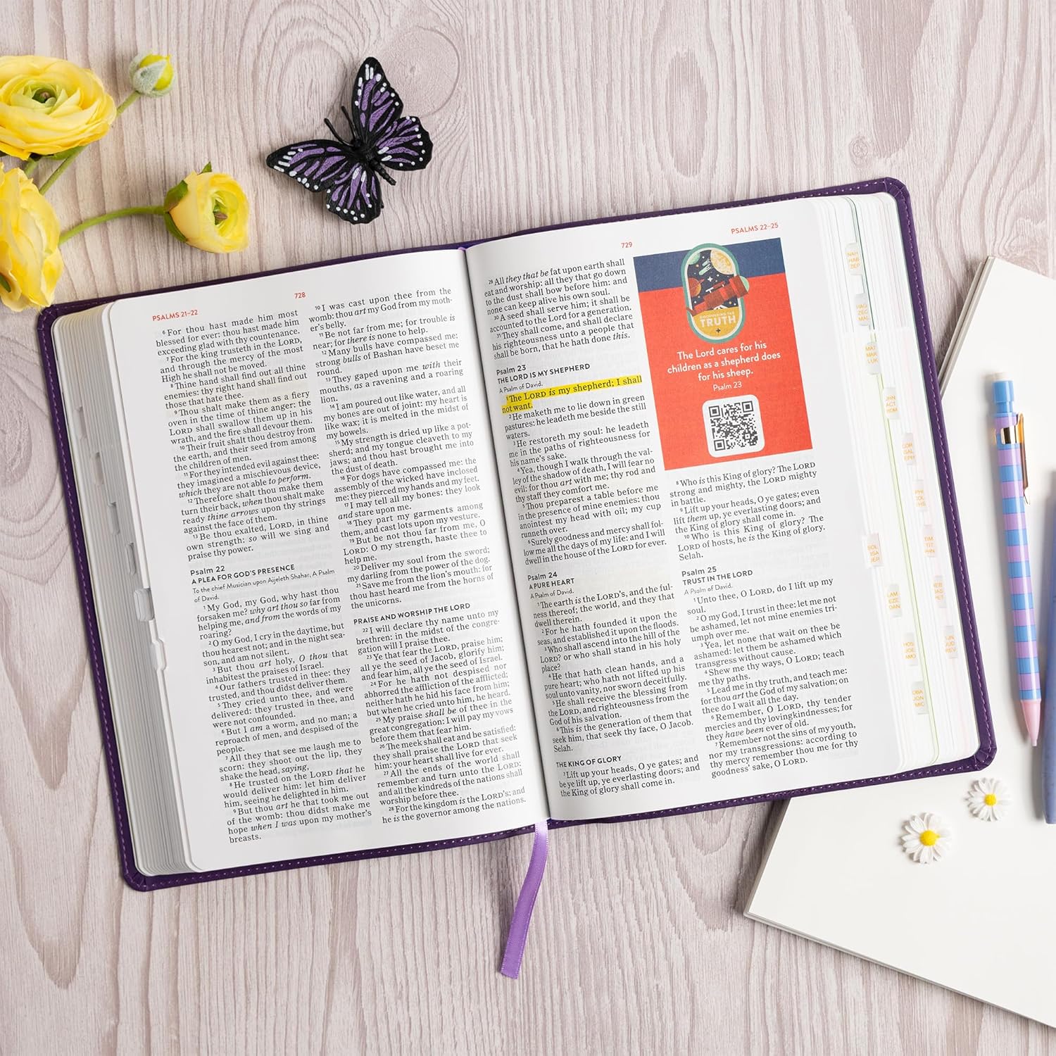 The KJV Explorer Bible for Kids helps kids place God’s Word in the middle of God’s world. Within its engaging, full-color pages, kids will interact with the people, places, and things of the Bible and God’s creation. Fascinating images, illustrations, timelines, and study helps show archeological evidence, introduce key characters, explain new concepts, and help kids experience the wonder and truth of the Bible. QR codes placed throughout the Bible bring educational videos, discussion questions, and activity pages to life, helping kids apply key truths of the Bible to real world experiences.
