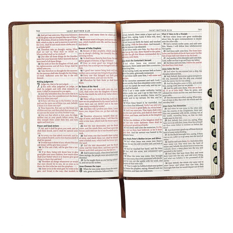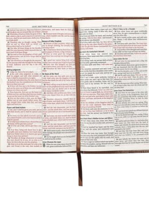 This beautifully classic King James Version Bible makes a thoughtful gift for a special birthday or a life event such as a graduation or an engagement. Composed with an imitation leather cover that has an ornate filigree border design framing the gold foiled title and heat debossed edition imprint. The inviting design continues onto the spine, featuring heat debossed faux spine ribbing and translation imprint, along with a gold foiled title. The Bible’s interior features a standard 9-point type in a double-column format, thumb-index, reader-friendly subheadings, and thematic Scripture verse finder. Additional resources for biblical study include a reading plan that is structured to help you read through the entire Bible in a single year. A presentation page is included to complete with a special encouraging message in case you decide to give this beautiful KJV Bible as a gift.