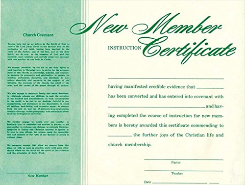 To be awarded upon completion of new members’ class. Includes recognition and church covenant. Size: 11″ x 8 1/2″.