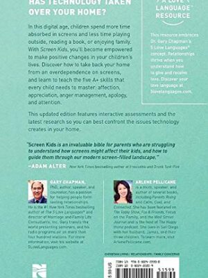 In Screen Kids Gary Chapman and Arlene Pellicane will empower you with the tools you need to make positive changes. Through stories, science, and wisdom, you’ll discover how to take back your home from an overdependence on screens. Plus, you’ll learn to teach the five A+ skills that every child needs to master: affection, appreciation, anger management, apology, and attention. Learn how to: