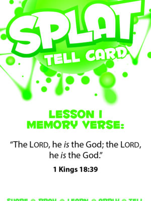 For use during Tell time, SPLAT Pre-K/Kindergarten Tell Cards contain take-home activities for students. The 2.75” x 4” cards include the lesson memory verses as well as an activity for students and parents to do together that follows up the life application of each week’s SPLAT Sunday School lesson.