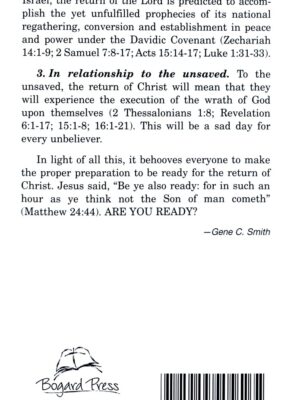 This bi-fold tract reveals the certainty of the return of Christ. Because of this certainty it is imperative that all choose to follow Him. Using Scriptures regarding the signs of His coming, in conjunction with the current times, Gene Smith reveals that the return of the Lord must be soon.