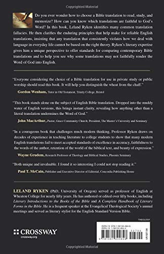As an expert in English literature and literary theory, Leland Ryken approaches the translation debate from a practical artistic viewpoint. He believes that many modern translations take liberties with the biblical text that would not be allowed with any other type of literary work. Also, what readers are presented with as biblical text is actually far from the original text. In literature, a simplified version of Milton’s work is not Milton, and neither is an edition written in contemporary English. Anyone who is interested in Milton would find any version that changes his words unacceptable for serious study. Ryken argues that the same dedication to reproducing literature texts as closely as possible needs to be present in biblical translation. To do so, it is necessary to take into account the difficulty of working with original languages. Only an essentially literal, “word for word” translation of the Bible can achieve sufficiently high standards in terms of literary criteria and fidelity to the original text.