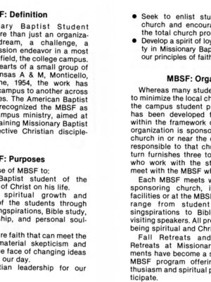 This tract gives you the definition, purposes, organization and needs of MBSF on campus of colleges and universities. It is very important for students to step out with the right focus for their lives. If they do not set the Lord Jesus Christ and HIS churches as their focus then they can be led astray by all the lies that are out there to mislead them. Students need to LIVE Christ-centered lives. READ YOUR BIBLE.