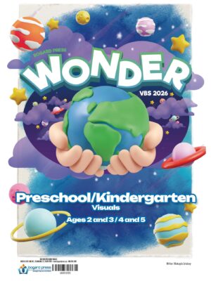 Includes colorful posters and other teaching aids. The teacher can use the posters to enhance Wonder lessons and to create a learner friendly atmosphere in the VBS classroom. INCLUDED IN THE SAMPLE KIT. Returnable Item. Please Note: there is one Preschool/ Kindergarten Teacher and one set of Preschool/Kindergarten Visuals.