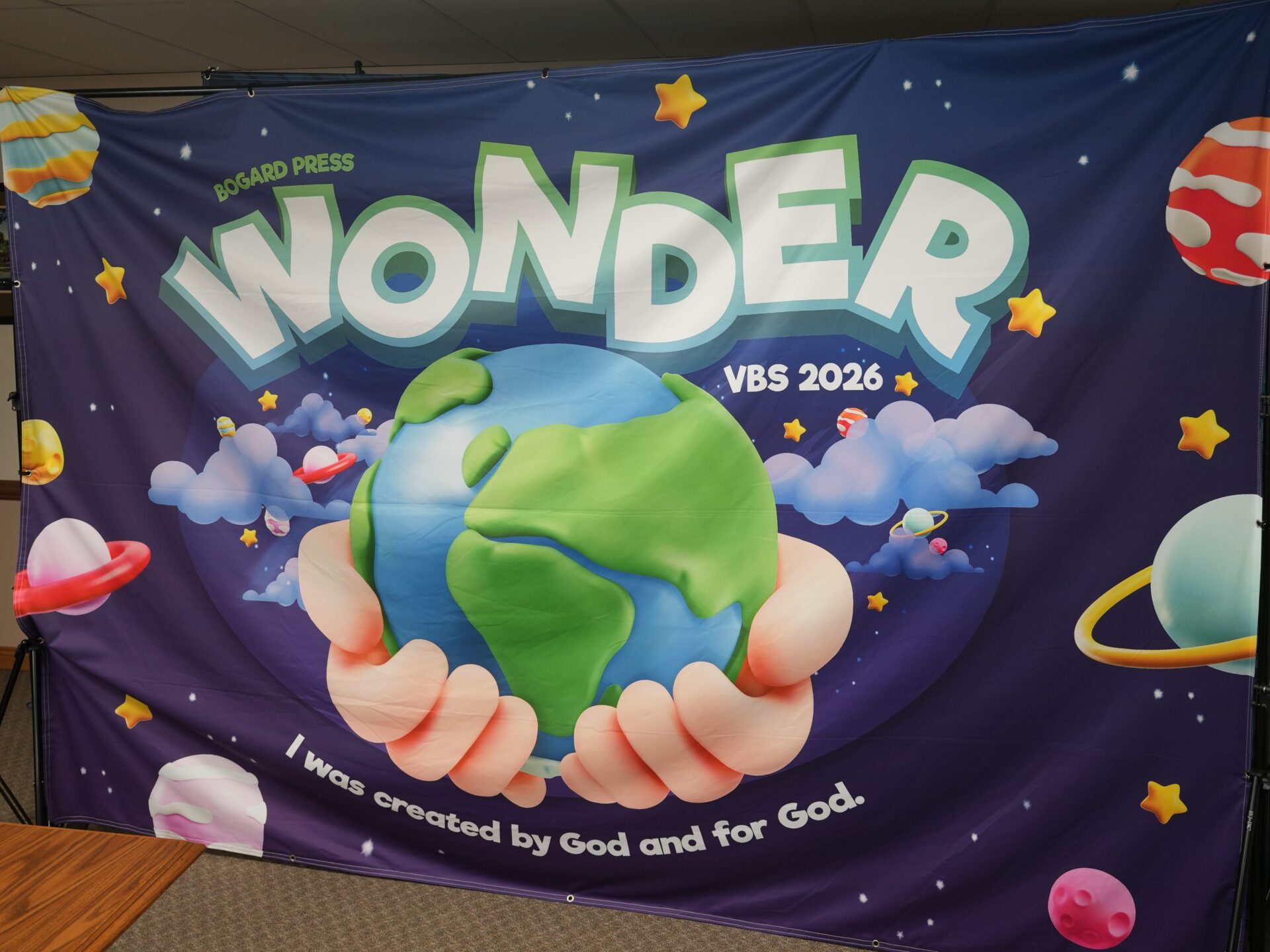 Wonder VBS 2026 Theme Cloth Banner – 8×10 banner made of high quality, durable cloth material. This will be available in addition to the vinyl