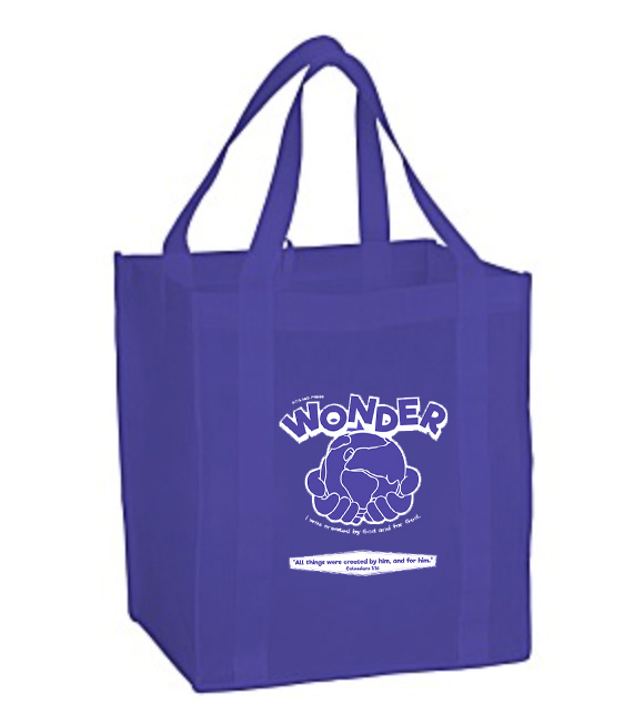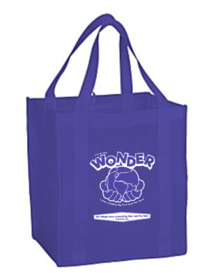 The purple 16″ × 14.25″ × 4.25″ tote bag is made of non-woven polypropylene fabric with 15.5″ handles. Features the Wonder VBS logo. INCLUDED IN THE SAMPLE KIT Nonreturnable Item LIMITED QUANTITY